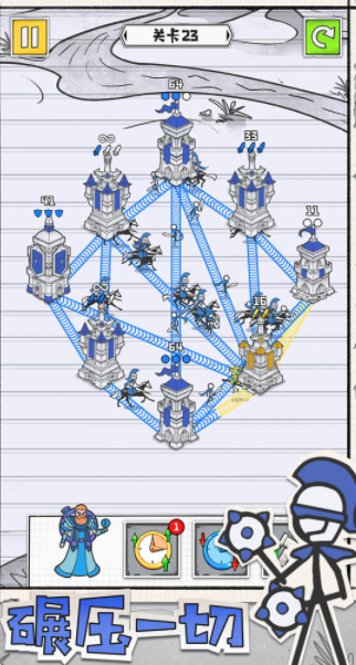 进化高级:当城堡到达高分时,会将接收的火柴人士兵派发出去;