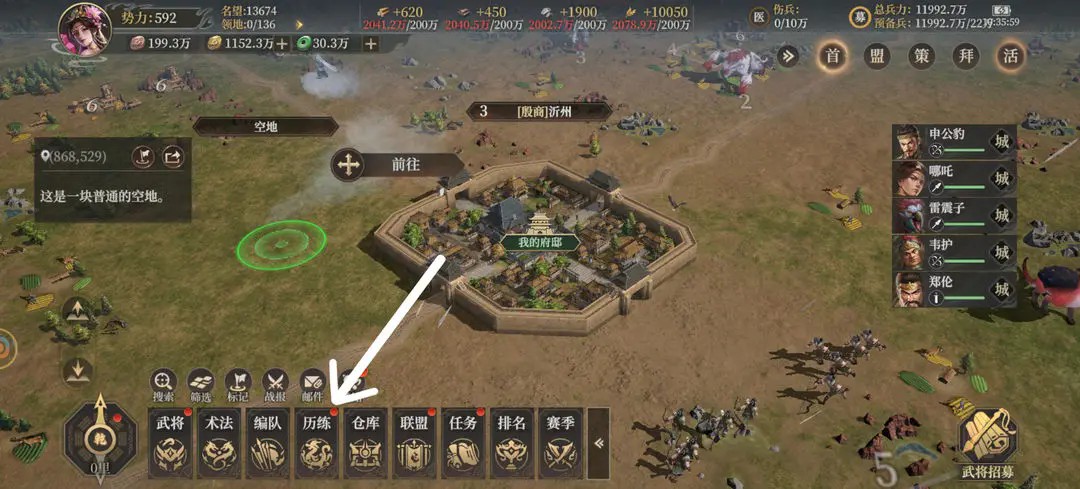 除此之外,当诸位将军处于己方城市内时,便可发展自己的驻军营地。