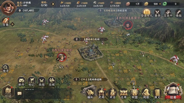 玩法一、大地图攻城拔寨,发展自身驻军营地。