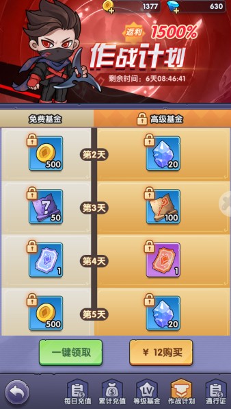 3、等级基金、通行证、作战计划等高性价比礼包。