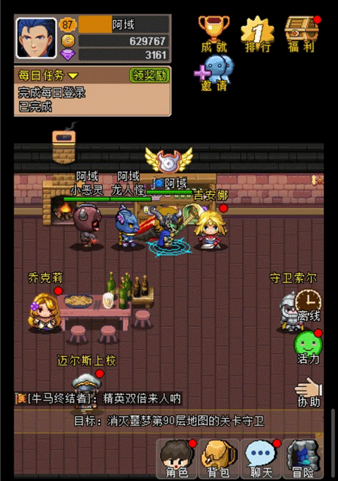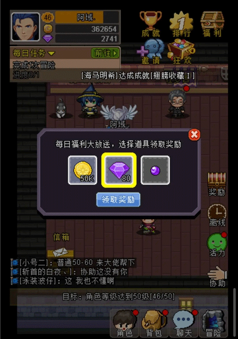 协助里那个有五角星里面写个2的就是有双倍BUFF的房间,点击协助,进去白嫖吧!!!最后,钻石在前期的主要作用就是提升背包与仓库容量,所以不要乱花哦,两个都升级到最高容量可以在成就里领取两个很厉害的技能哦。