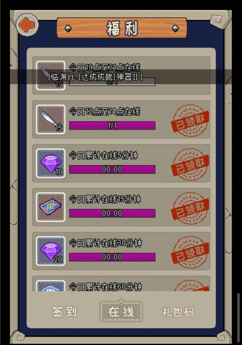 第一次回城之后点右上角的福利,再点下面礼包码,输入可以兑换的礼包,现阶段可用兑换码:
