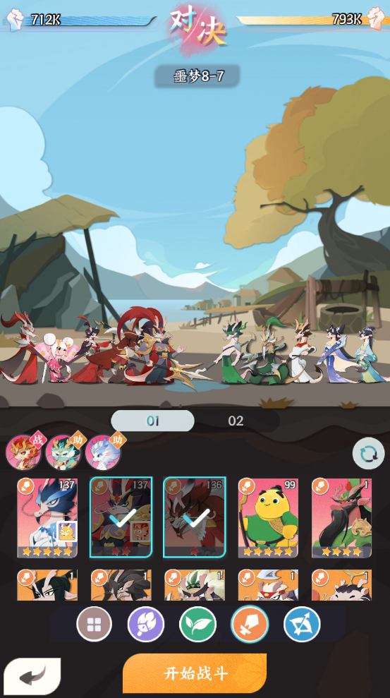 优先选择输出*2+辅助*1+战士*2的万金油阵容,输出可在法师和射手间进行选择,视队伍对AOE伤害或单体伤害的需求以及输出龙将的星级进行选择。前期以龙将的星级、属性为优先考虑因素,养成材料可通过重生无损返还,因此可先将初期龙将养成尽量拉高。