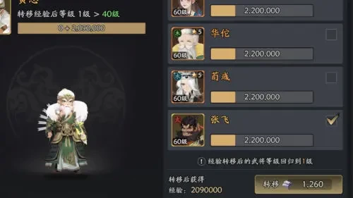 3、不同等级之间的武将也可以进行经验互换,消耗一定数量的银锭即可完成等级置换,被置换的武将等级将变回一级。