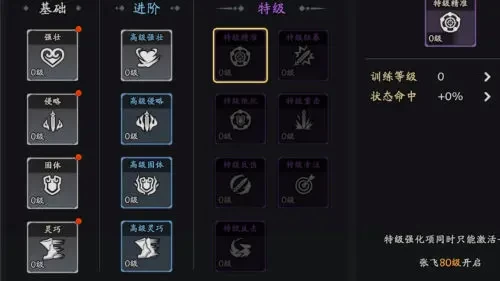 7、随时能够靠着刷新,可以在3个训练项中选择一个属性进行激活,并且每5次训练可进行1次特殊训练项进行训练。训练项的品质由低到高分为四种品质,不同品质加成不同。