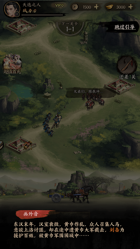 1、进入游戏后会经历一段东汉末年剧情,可以选择跳过。