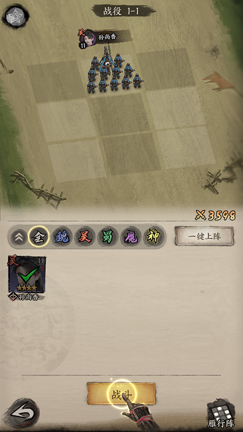 3、养成后的角色就可以选择出阵了。
