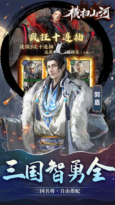 横扫山河官方安卓版以三国时代为背景,玩家可以招募并升级各种三国名将的卡片,打造你的无敌之师。卡片各自代表一个具有独特技能和属性的三国角色。玩法是回合制,玩家需要在每一轮的游戏中做出策略,带领自己的军队参与战术对决。
