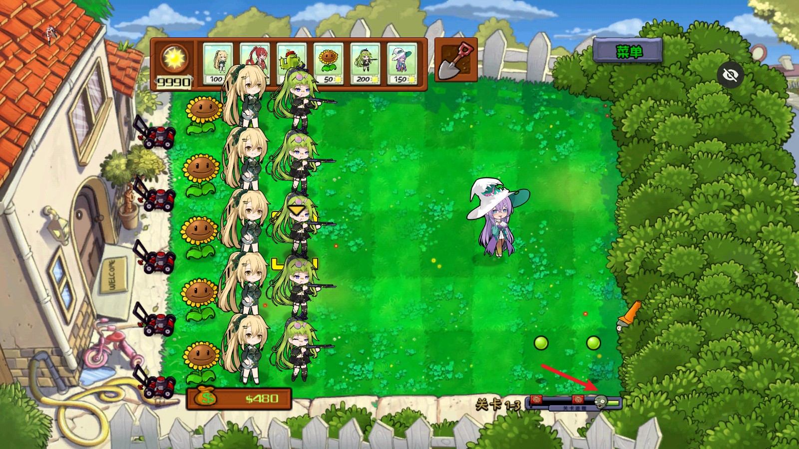 1、进入游戏后选择好需要使用的植物,还有变换形象后的植物娘哦!