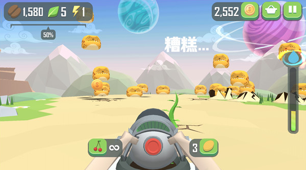 2、每一个水果子弹都有不同的威力,玩家需要合理的来利用自己的水果枪来射击怪物。