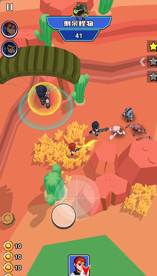 荒野大作战是一款十分休闲的射击闯关类游戏,精美Q萌风格的游戏画面搭配丰富多样的射击竞技玩法,给玩家带来无与伦比的游戏体验!玩家只需要根据关卡顺序以此进行闯关,操控角色进行移动即可,在移动的过程中人物会自动进攻敌人。