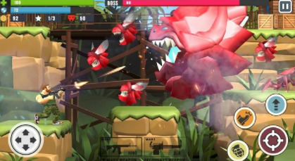 金属兄弟是一款简约卡通风格的2D横版射击冒险闯关类手游,游戏中玩家将要操控着一位壮汉前往各个关卡场景内展开冒险,这期间你将会遇到各种变异生物,而你要做的就是使用手中的武器将其统统消灭,随着玩家不断地进行深入探索,我们将会遇到非常强力的BOSS,这时候就比较考验玩家的走位操作和反应能力了,只有将BOSS击败后我们才能完成闯关并解锁下一关卡。