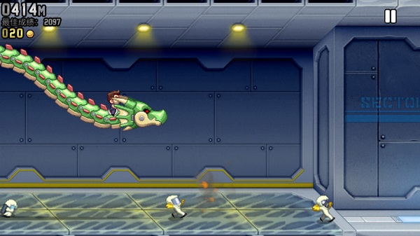 火箭飞人游戏(Jetpack安装器)是一款十分有意思的飞行射击游戏。玩家在游戏中扮演的是主人公(Barry)秘密潜入神秘的基地来夺走邪恶的科学家研制的超级火箭飞行器,接着用这个飞行器来逃生,需要通过上下左右飞行来避开工厂里面的障碍物,还可以用收集的金币来购买特殊道具,使得游戏的耐玩性更高,感兴趣的朋友快来下载吧。
