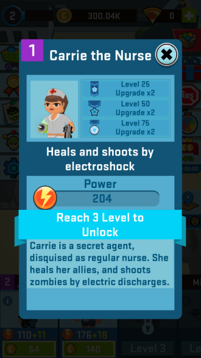 3、你厌倦了在城市里跑来跑去,但又想继续消灭僵尸和升级装备吗?不用担心,游戏有空闲模式。用强大的战士提升你的团队,并解锁新的僵尸仇恨者——即使你在睡觉,他们也会继续与僵尸战斗!