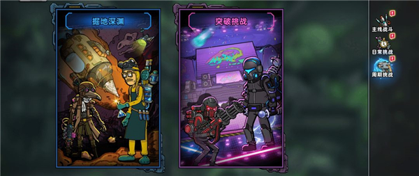 日常挑战有4个副本,伴随等级提升逐步解锁。通关后分别掉落技能升级材料、卡带、英雄升级材料、宠物养成材料&低阶宠物。难度不是很高,带着自己的三人两宠小队伍突突突就完了。