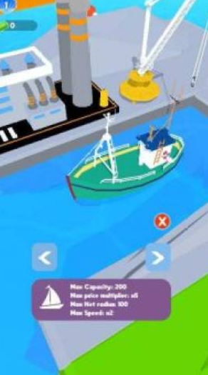 闲置鱼市场游戏下载是一款经营类手游,玩家在游戏中扮演渔夫驾驶自己的小船在海上捕捞大鱼,玩家需要不断升级自己的渔船和捕捞能力,提高捕捞效率,吧捕捞到的鱼运送到集市上卖获取更多收益。