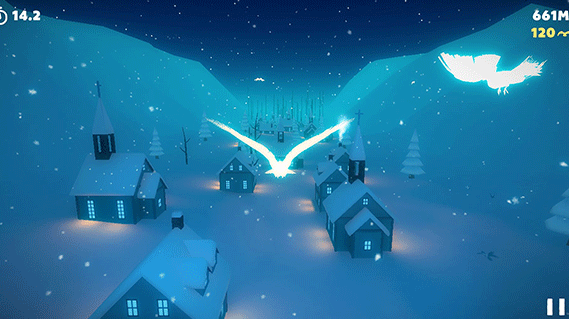 white trip(纯白之旅)是一款玩法简单但是画风唯美的飞行休闲游戏,每个关卡的风格背景都不一样,不同的时间能欣赏到不一样的风景,在游戏旅程中玩家将化身成为白色的小鸟在世界中冒险,需要不断碰到发光的小动物补充能量,逃开黑鸟的袭击,并避免其他障碍,还可以碰到其他鸟增强能力,飞到最后的目的地。