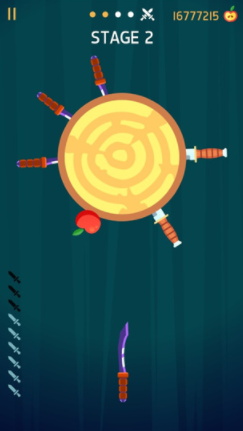 飞刀打击(Knife Hit)是一款类似见缝插针的竖屏闯关手游,而且是大名鼎鼎的Ketchapp公司推出的休闲小游戏,画面柔和,操作流畅,既考验反应又锻炼眼里,玩起来让人欲罢不能,非常有趣。游戏中玩家只需要在小小的靶子上钉上指定数量的飞刀,把握住时机将飞刀甩向苹果,将靶子击碎完成挑战。