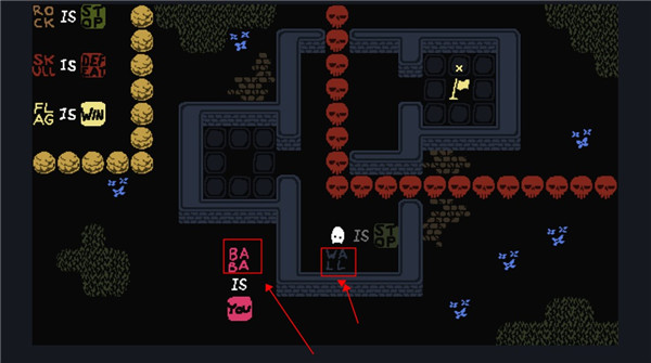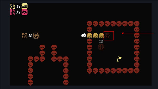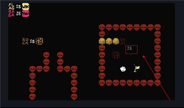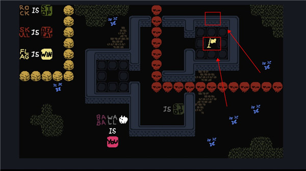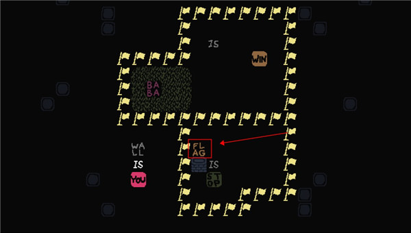 2、这个时候我们控制的就不是baba了,可以控制墙壁,向下滑动用墙壁触碰旗子