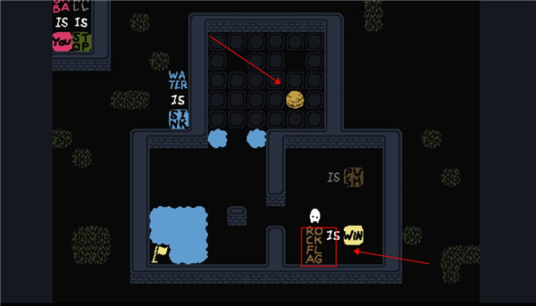 2、将这两个字母推到最下面后,原路返回去触碰另一个石头,我们就可以通关了