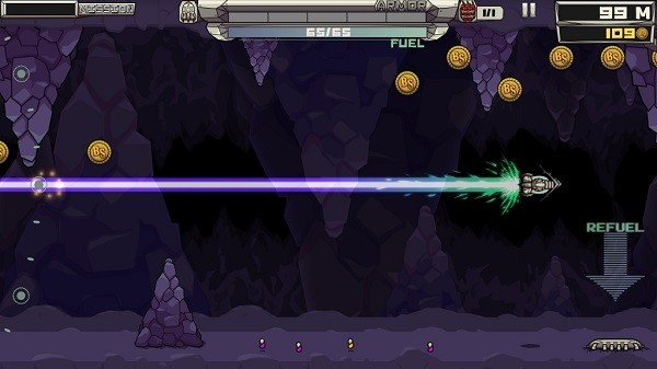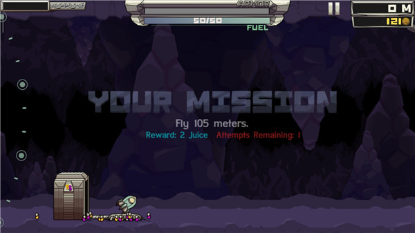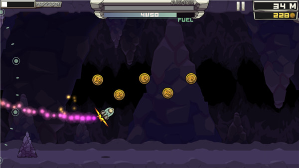 收集遗落在洞穴之中的宇宙货币,并努力将你的火箭送入宇宙,这就是游戏的最终目标。