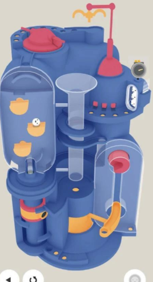 机器复杂,操控简单,玩家只需要拉一下拉杆,放出一颗小球,看着小球进入到机器后。