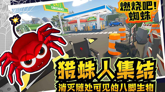 燃烧吧蜘蛛是由tinyBuild厂商制作的一款休闲游戏,这款游戏有着和你好邻居类似的画风,采用3D建模的方式打造整体游戏画面,不论是物品还是出场的角色都利用3D建模一比一还原现实,和你好邻居不同的是这款游戏拥有动作和武器系统。玩家在这里将扮演一名消灭蜘蛛的除虫人员,你想到的是什么方式清理这些害虫呢,不妨大胆点,你可以利用火焰杀死他们,或者是子弹、飞镖、又或者是TNT、火箭筒等,使用最先进的武器对付他们。
