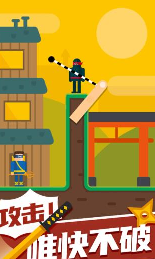 忍者大师是一款趣味性十足的忍者拔刀砍杀闯关游戏,游戏采用了2D萌贱卡通风格,在这里你需要扮演一名忍者新手在精彩的大城市击败间谍以及邪恶势力最终成为一个顶级忍者大师!在游戏当中玩家不仅能直接拔刀精准击杀敌人,还能利用百变的环境因素通过敌人自身的武器来给敌人致命一击。