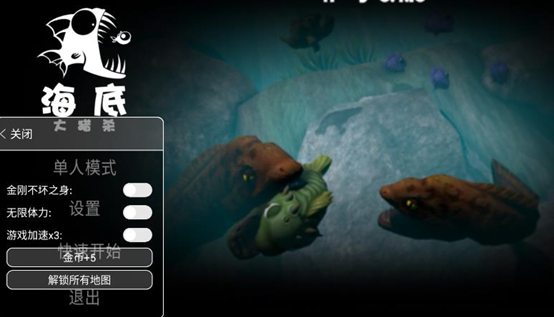 海底大猎杀内置功能菜单版下载是一款趣味解压游戏,玩家在游戏中扮演一个深海中的小鱼,不断躲避比自己大的鱼,吞噬比自己小的鱼,快速升级,还有多种模式供玩家游玩,该版本拥有内置菜单供玩家开启各种功能。