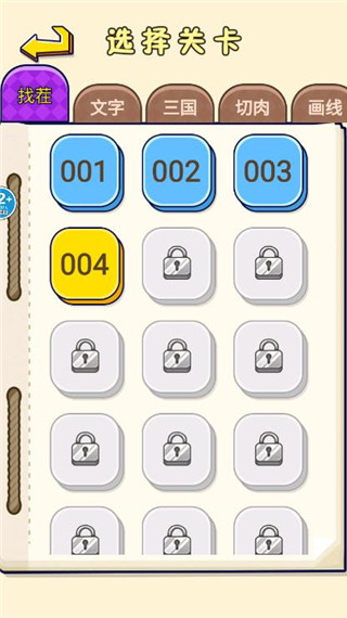2、这里提供了很多的关卡可以挑战,还分为找茬、文字、三国等不同的玩法模式。