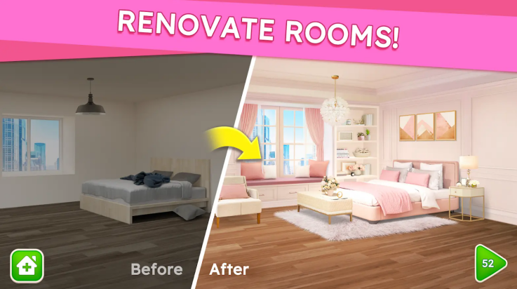 1、创新性玩法融合:传统三消玩法与装修模拟结合、关卡进度决定装修资源获取、500+风格各异的家具饰品。