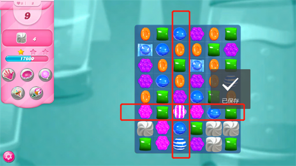 2、包装糖果则是会消灭以这颗糖果为中心周围九宫格的糖果,效果有2次。