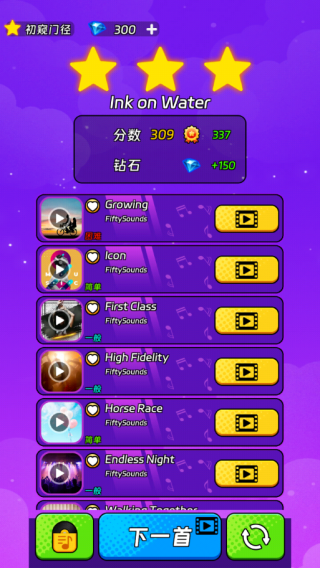 4、曲目结束会根据玩家的得分获取钻石奖励。