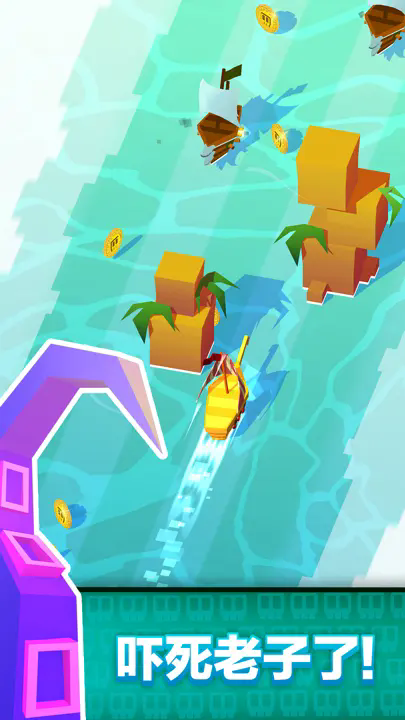 该游戏的操作是采用了点触控式设置,清点游戏屏幕即可让海盗王前进,而左右滑动即可变换行动方向,但不能后退,否则你将粉身碎骨,并且只要你点击的屏幕够快,那么海盗王的移动速度也是变快,这对于游戏中的各大陷阱通过是之至关重要的。