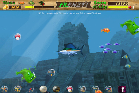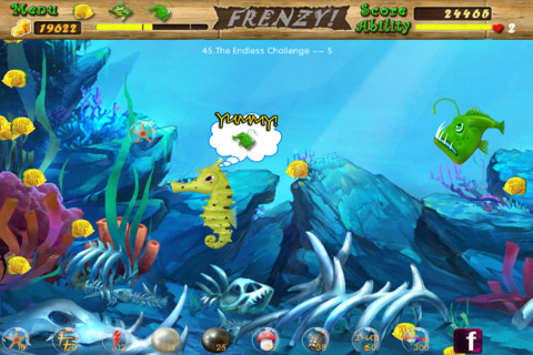 游戏的一代就已经是很有创意的了,说的通俗一点就是大鱼吃小鱼,几秒钟之前还追得你到处跑的鱼,在几秒种之后反过来就被你追杀呢~~~在二代中又加入了鱼吃小虫子,传说中的“飞鱼”,添加了在水上面的游戏场景。