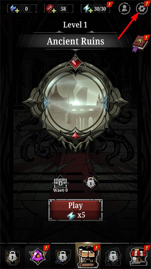 2、进入关卡后需要将获得的初始装备放入背包,如果有相同的装备可以合并来提升等级。