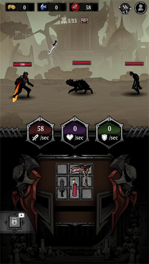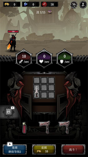 3、放好后点击战斗就可以开始闯关,角色会自动攻击出现的敌人,击败敌人可以获得金币,金币可以用于购买新的装备。