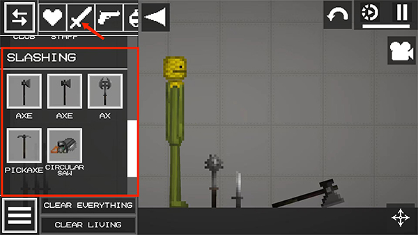 6、选择【宝剑】图标,包括宝剑、锤子、斧头等冷兵器可以选择使用,