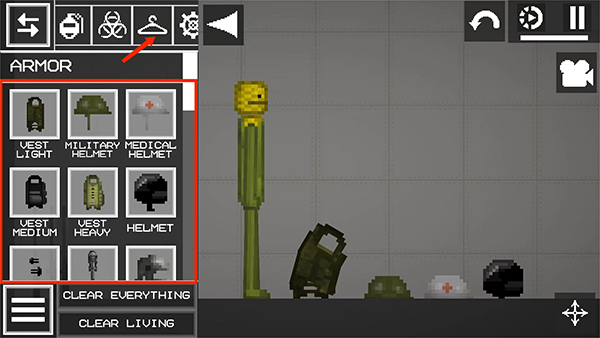 10、选择【衣架】图标,包括防弹衣、安全帽、头盔等不同类型的防具,