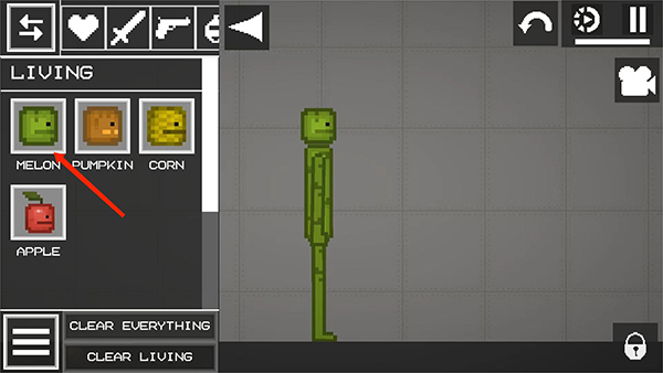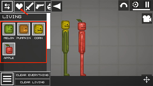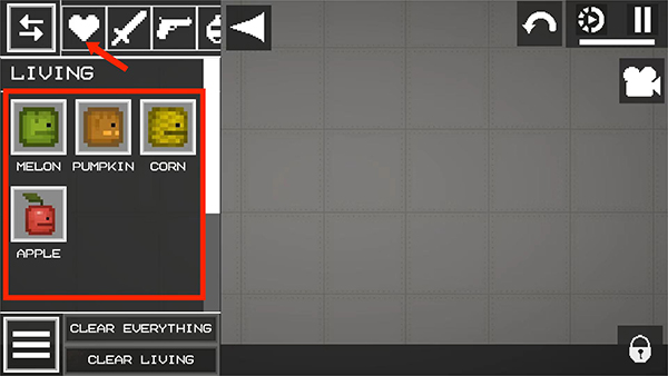 2、进入菜单界面,选择【爱心】图标,选择其中一个人物后拖动到地面上,这里以西瓜人为例,