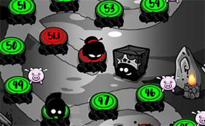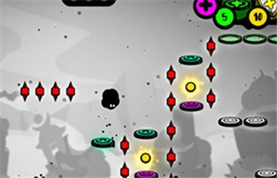 1、操纵小黑球不断进行跳跃,越过障碍物等东西,直达终点。