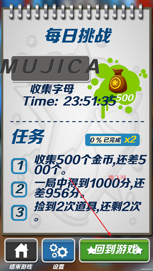 3.如果没有成功躲避障碍物则教程结束,点击“主页”按钮,回到游戏主页;