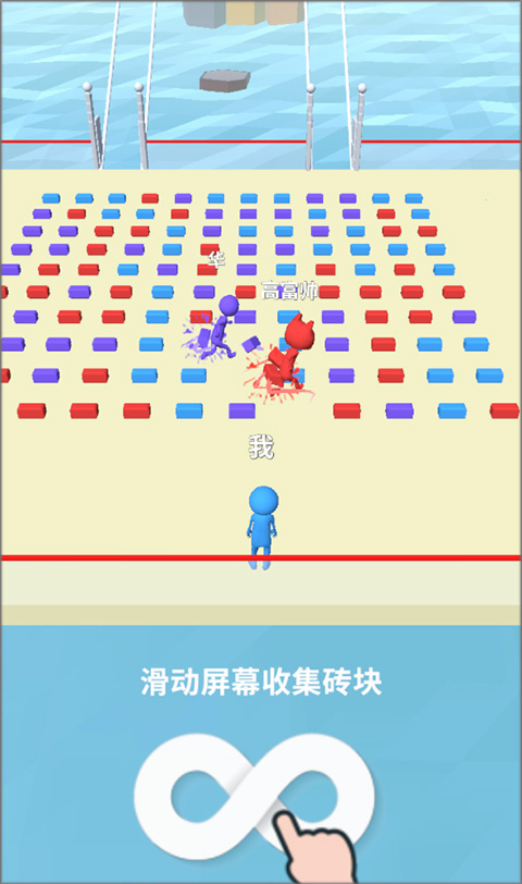 1、下载安装好搬砖争霸赛小游戏,进入游戏,你可以滑动屏幕来手机砖块,只能收集与自己颜色相同的地砖。