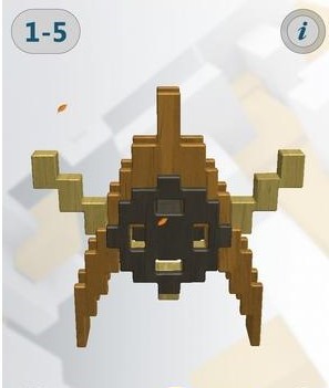 1、1-5关中,是一个由3个部件组成的物品。可以看到,3个部件有2个是V字型的、可上下移动的木条,中间的则是一个两头大,中间细两头粗的“螺帽”。