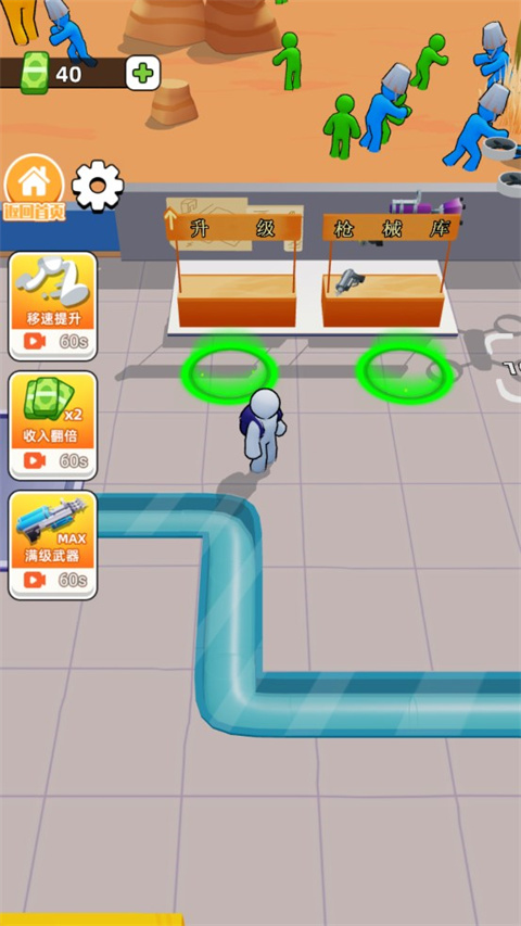 5、可以升级人物的速度、枪械和力量,等级越高捕捉僵尸也会越来越多;