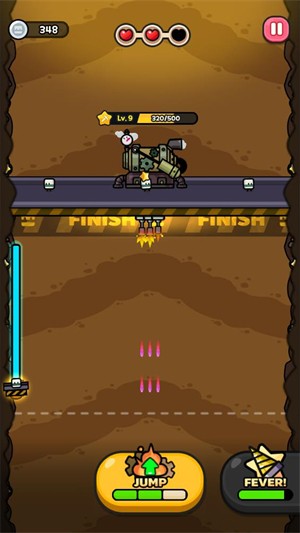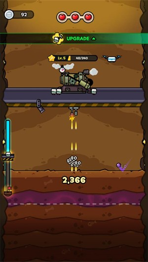 2、进入关卡后挖掘机会自动向下前进,点击下方的jump可以向上跳跃一段距离。