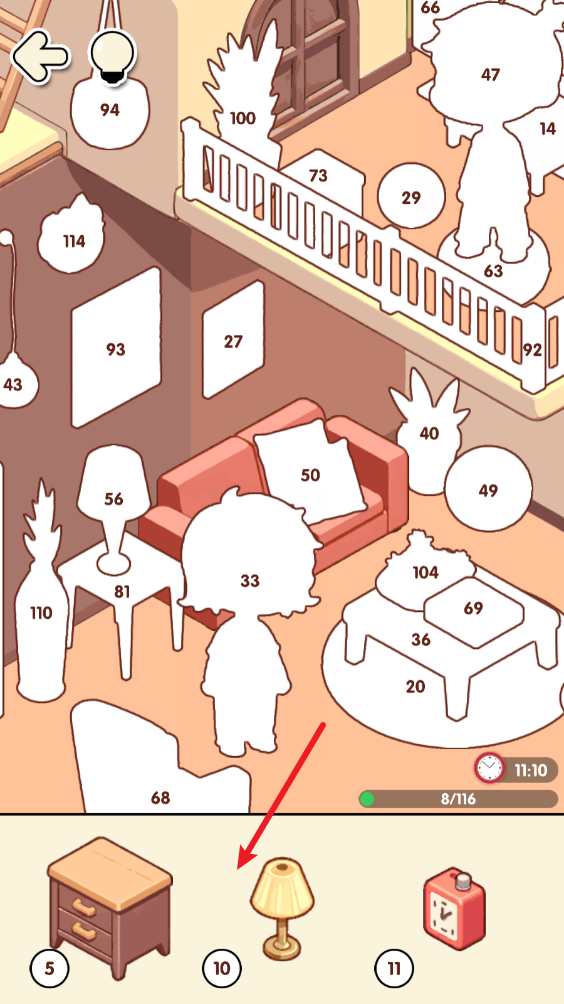 2、进入之后我们就能看到许多标有数字的空白物品,下方也有着对应数字的物品。
