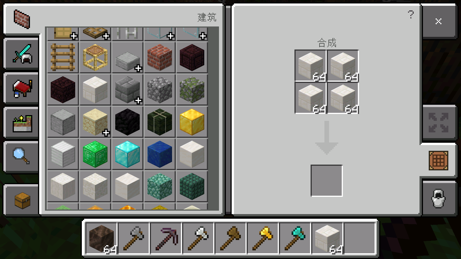 3、点击下方的物品栏即可自由的切换各种工具或者材料。