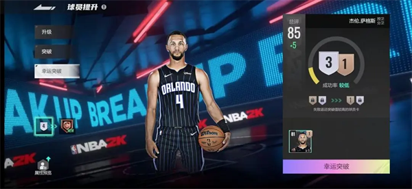 2)球员培养:球员升级、球员突破系统开放。