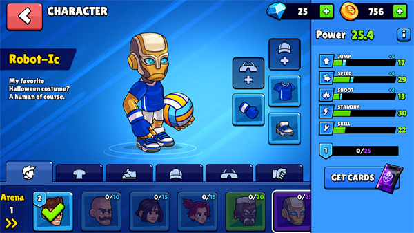 1、玩家可在排球竞技场首页中查看自己的选手角色、金币数量、账号信息等。